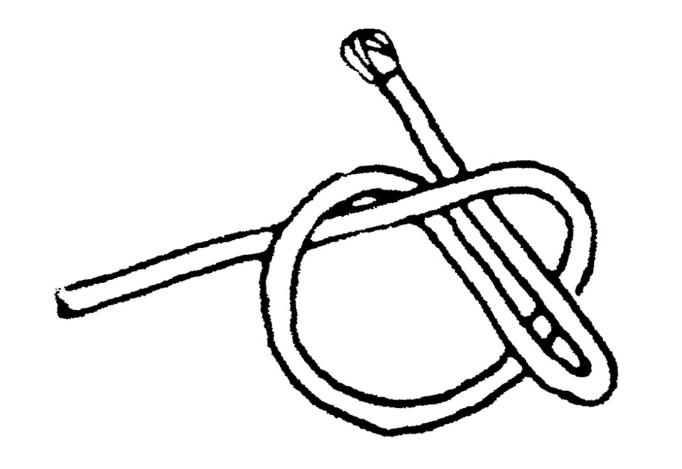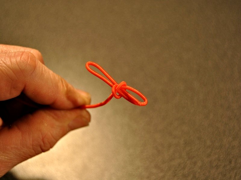 - die Schlaufe zusammen ziehen und das Ende ausrichten
