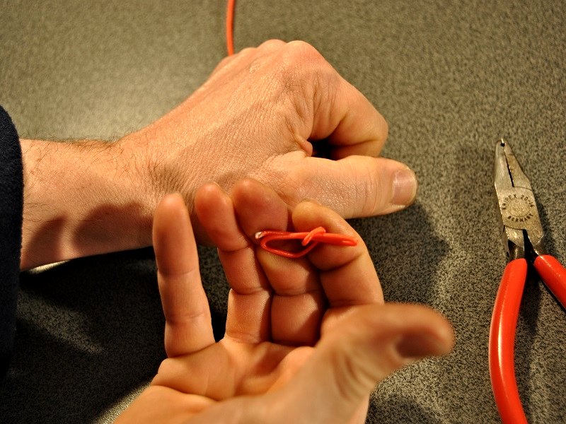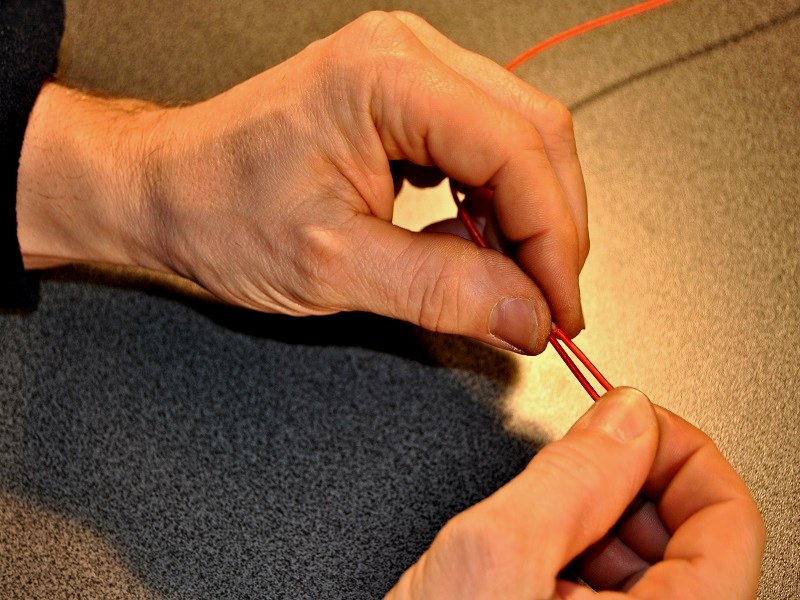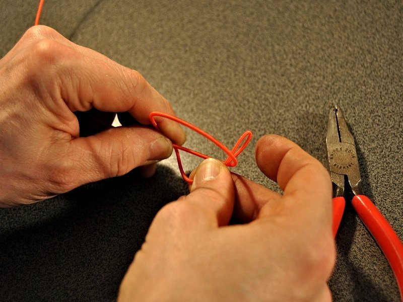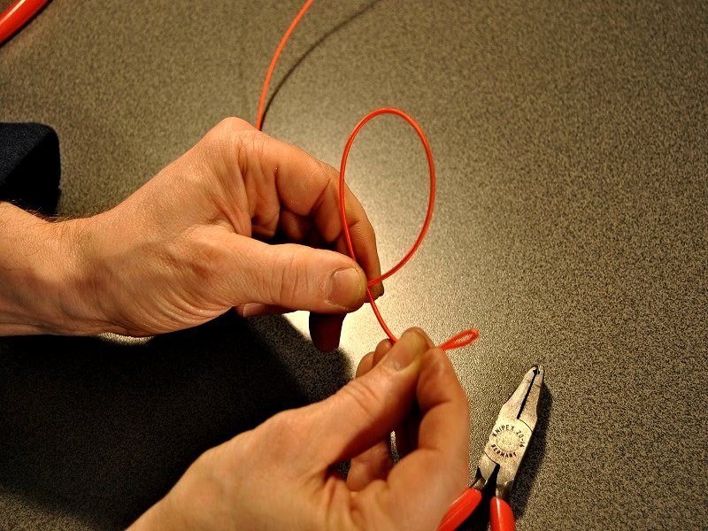 Saiten ohne Stahlkugel benötigen zur späteren Montage einen Harfenknoten (siehe Grafiken).