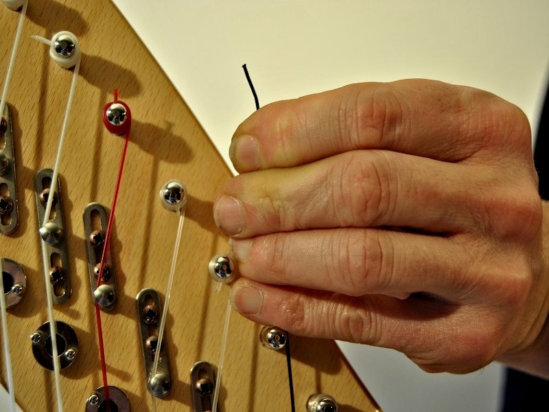 An diesem müssen Sie bei dünnen Saiten den beiliegenden Saitenabschnitt festknoten.