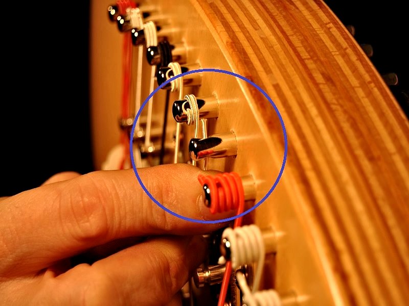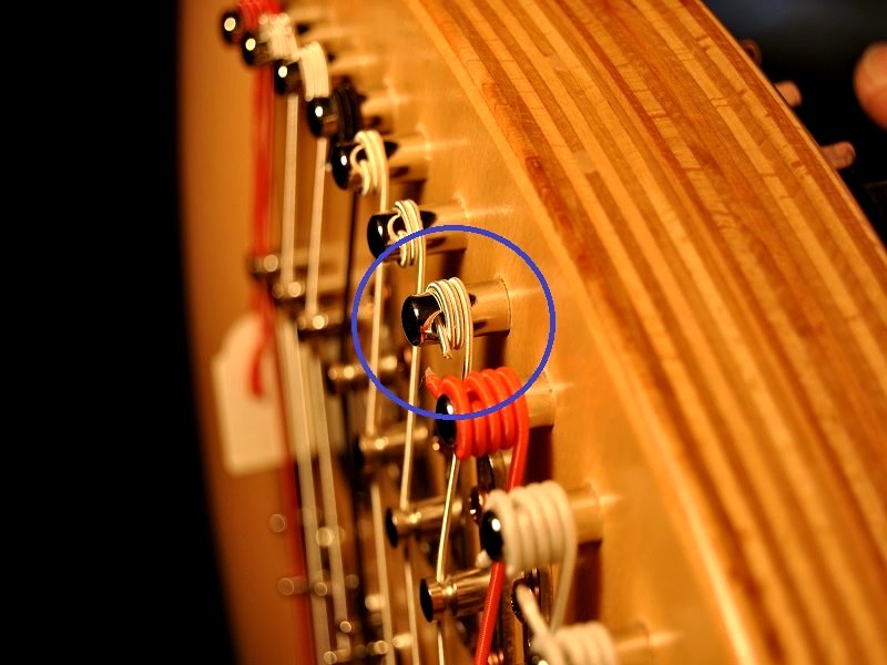 Der Harfenknoten bei umsponnenen Saiten