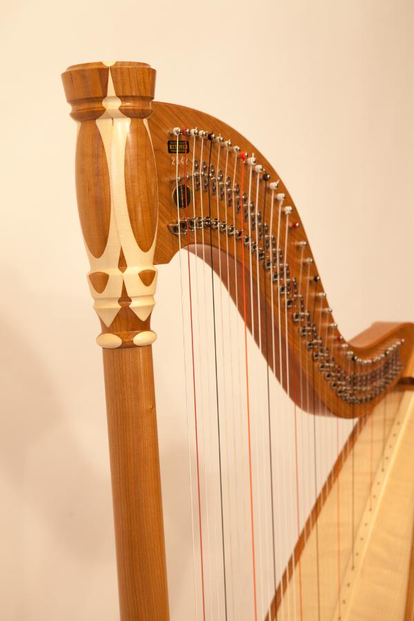 All parts of the harp (which would otherwise be made form cherry) are made of maple wood.