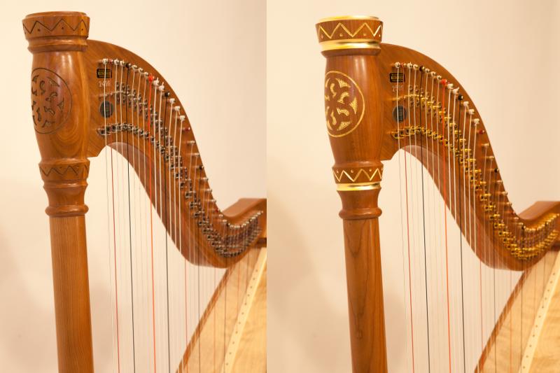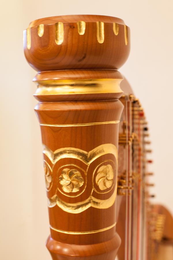 Fischer harps are available with various carvings. On request, the carvings can be gold-plated or individual detailing can be added.